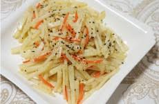 가능하지만 색이 갈색으로 변해요. 흰 감자볶음을 원한다면 소금 간이 좋습니다.