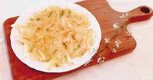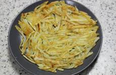 맛 포인트 얇게 채썰기 + 전분 제거 + 바삭하게 구움