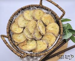 고구마튀김은 얇게 썬 고구마를 튀김옷에 입혀 튀긴 요리로, 겉은 바삭하고 속은 포슬한 식감이 매력적입니다. 간식, 도시락 반찬, 분식집 메뉴로도 사랑받죠.