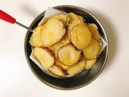 고구마튀김은 얇게 썬 고구마를 튀김옷에 입혀 튀긴 요리로, 겉은 바삭하고 속은 포슬한 식감이 매력적입니다. 간식, 도시락 반찬, 분식집 메뉴로도 사랑받죠.