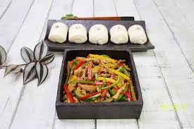 - 주재료: 쇠고기(등심 또는 안심) 200g, 청고추 2개, 홍고추 2개, 양파 1개, 파프리카(노랑, 빨강) 각 1/2개