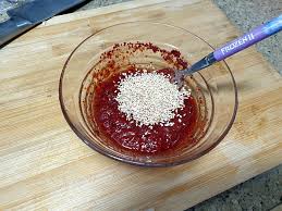 1) 고추장을 베이스로 설탕, 식초, 마늘 등 감칠맛 나는 재료를 섞어 만든 만능 양념