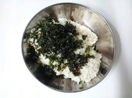 마른김은 가위로 잘게 자르거나 손으로 부숴 준비합니다. 불포화지방 많은 들기름이나 참기름을 준비해두세요.