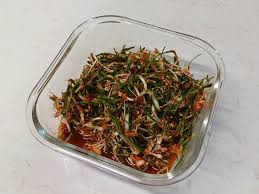 달래는 뿌리 끝을 다듬고 얇은 껍질을 벗긴 후 깨끗이 씻어 2~3cm 길이로 송송 썰어주세요. 물기를 최대한 제거해야 양념이 묽어지지 않아요.