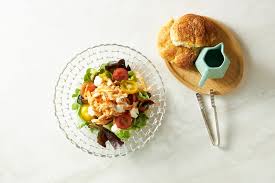 • 담백한 닭가슴살 샐러드에 바삭한 크루통이나 통밀빵을 곁들이면 식감이 더욱 좋아집니다.
