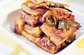 1. 두부 손질: 두부는 물기를 제거한 후, 2cm 두께로 길게 반으로 자르고, 다시 2cm 간격으로 잘라 네모난 모양을 만듭니다.
