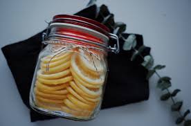 소독한 유리병에 레몬과 설탕을 번갈아 가며 층층이 담습니다. 맨 위층은 설탕으로 덮어줍니다.