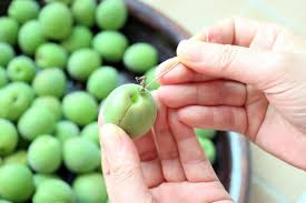 이쑤시개나 작은 칼을 사용해 매실 꼭지를 제거하면 쓴맛이 줄고 깔끔한 맛이 나요.