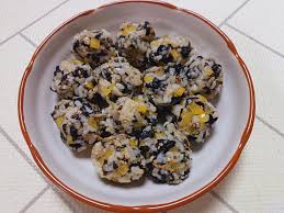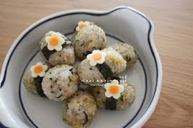 완성된 주먹밥을 그릇에 담아 맛있게 즐깁니다.