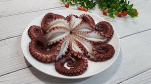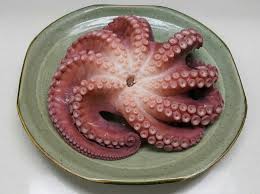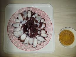 - 삶은 문어를 먹기 좋은 크기로 썰어 접시에 담습니다.