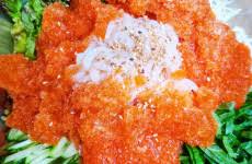 2. 생선회 올리기: 채소 위에 먹기 좋은 크기로 썬 생선회를 올립니다.