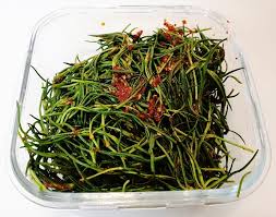 해안 갯벌에서 자라는 염생식물로, 바다향이 가득하고 아삭한 식감이 매력이며 데치지 않고 생으로 먹어도 부드럽고 짠맛이 적당해 무침용으로 인기가 높아요