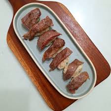 얇게 썬 소고기를 직화 또는 팬에 살짝 구운 후 새콤한 초밥 밥 위에 올려 먹는 고급 요리입니다. 불향이 올라오고 고기의 육즙과 밥의 조화가 일품이에요 😋