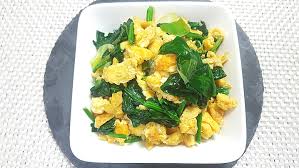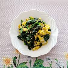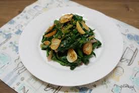 1) 살짝 데친 시금치를 간단한 양념으로 볶아낸 나물 반찬