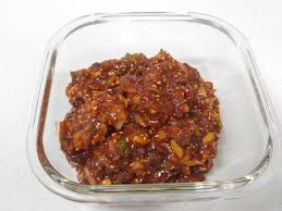재료:고추장 3큰술, 된장 1큰술, 간장 1큰술, 다진 마늘 1작은술, 참기름 1큰술, 설탕 2큰술, 물엿 1큰술, 깨소금 약간, 다진 양파 2큰술, 고춧가루 1작은술