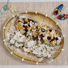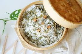 1) 쑥과 멥쌀가루를 무쳐 찐 전통 떡