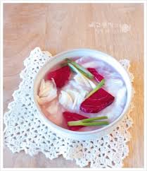 맑고 시원한 국물을 위해 찹쌀풀, 사과즙, 생강즙 등을 활용하는 것이 맛의 핵심입니다