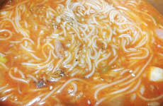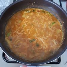 면사리를 넣고 3~4분 더 끓인 후 부추, 대파, 청양고추를 넣고 한소끔 끓이면 완성! 들기름 몇 방울로 풍미까지 더해줘요 💯