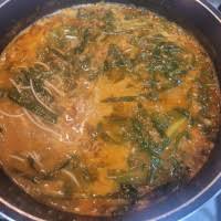 맑은 육수에 밥(또는 불린 쌀), 고춧가루, 마늘, 국간장, 들깨가루를 넣고 중불로 10분 이상 저어가며 끓입니다.