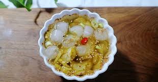 잘 익은 오이지를 썰어 시원한 육수나 물에 담가 식초, 설탕, 간장으로 간을 맞춘 여름 별미 반찬입니다. 입맛이 뚝 떨어질 때 새콤하고 아삭한 맛으로 식욕 자극! 😋