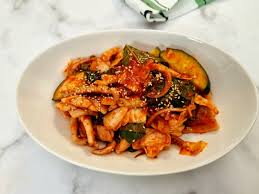 오징어에는 타우린과 아연이 풍부해 피로 해소, 눈 건강, 면역력 강화에 효과적이에요 양념에 들어가는 채소들도 비타민과 식이섬유가 풍부해요