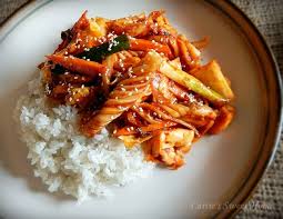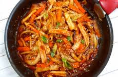 1) 오징어와 채소를 고추장 양념에 볶은 매콤한 한식 요리