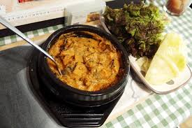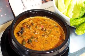 냄비에 쌀뜨물(또는 물) 2/3컵과 된장 2큰술, 고추장 1큰술을 넣고 약불에서 풀어가며 끓입니다.