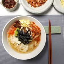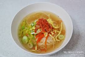 - 고명 재료: 삶은 계란 2개, 오이 1개, 당근 1/2개, 대파 1대, 김가루 약간