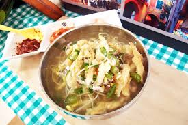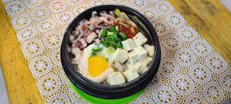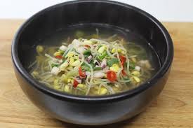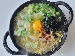 1) 시원한 국물에 밥과 콩나물, 대파, 고추 등을 넣어 끓인 한국식 국밥